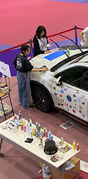 車にらくがきして、洗車しなくてもすぐにはがせるのは世界でもこの画材だけ。ボディ、ガラス、タイヤ、ホイール。あなたの車がキャンバスになる。